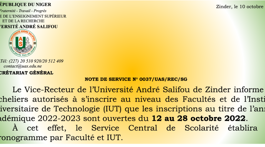 Ouverture des inscriptions en première année au titre de l’année académique 2022-2023 à l’Université André Salifou de Zinder